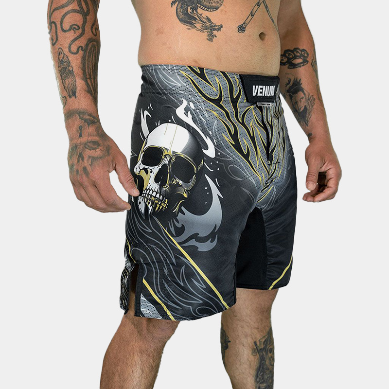 Fightshort – Venum Skull Savage Series (Negro) combinan actitud, rendimiento y estilo en un solo producto. Inspirados en el motivo de la calavera, símbolo universal de coraje, resistencia y Confeccionados con tejido ligero y altamente resistente.