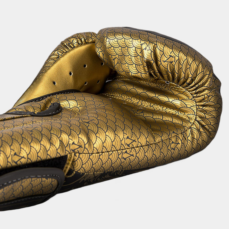 Guantes De Boxeo – Venum X Assassin’s Creed Shadows (Dorado/Negro), fabricados con espuma de triple densidad, están diseñados para ofrecer una excelente absorción de impactos.