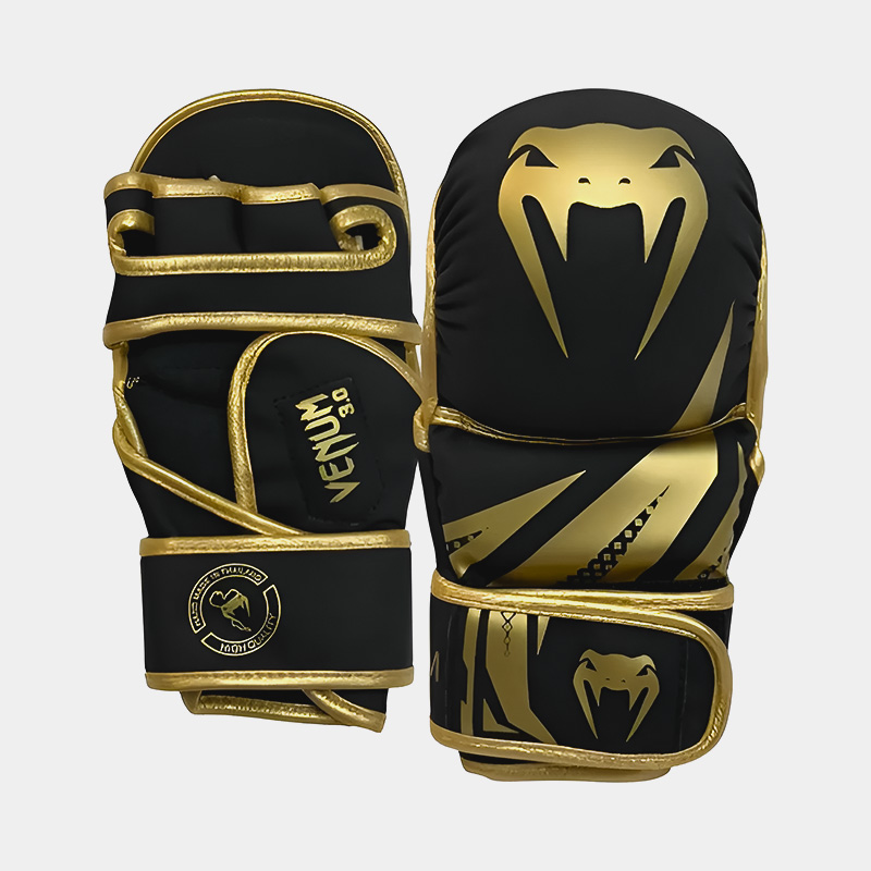 Guantes De MMA Grappling – Venum Challenger 3.0 (Negro/Dorado), diseñados para ofrecer una protección superior y libertad de movimiento, son ideales tanto para entrenamientos intensos como para competencias.